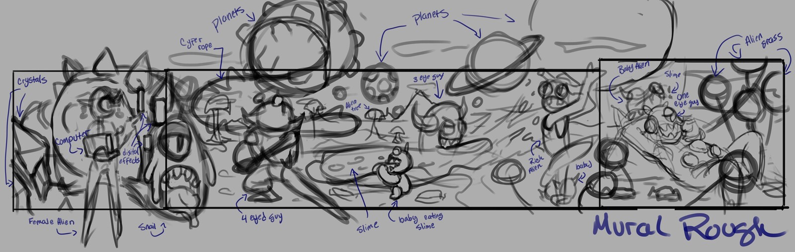 Step to creating a Mural using the cartoon alien characters